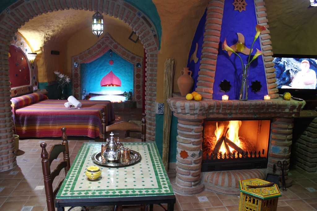 La Casa Rural Alhama tiene una decoración de estilo árabe y jacuzzi en el dormitorio. Chimenea en el salón, calefacción, piscina de agua salada compartida, barbacoa, terraza, etc.