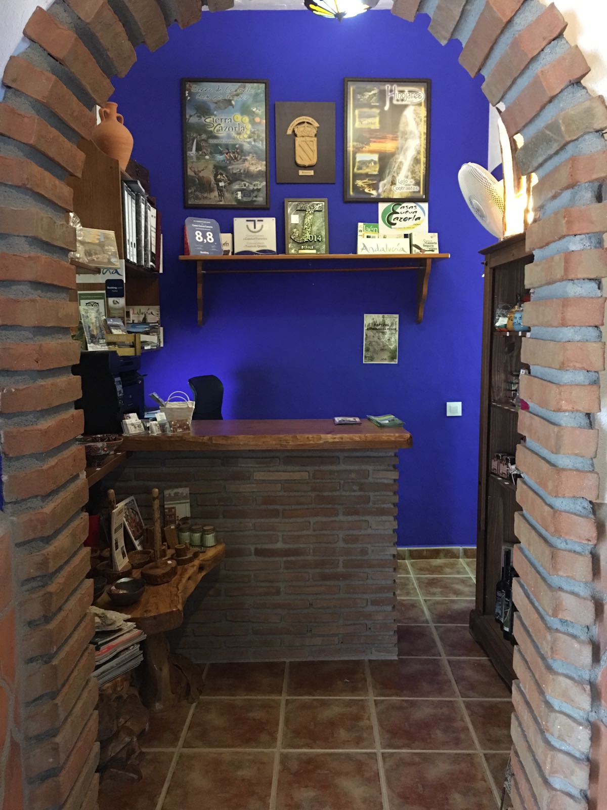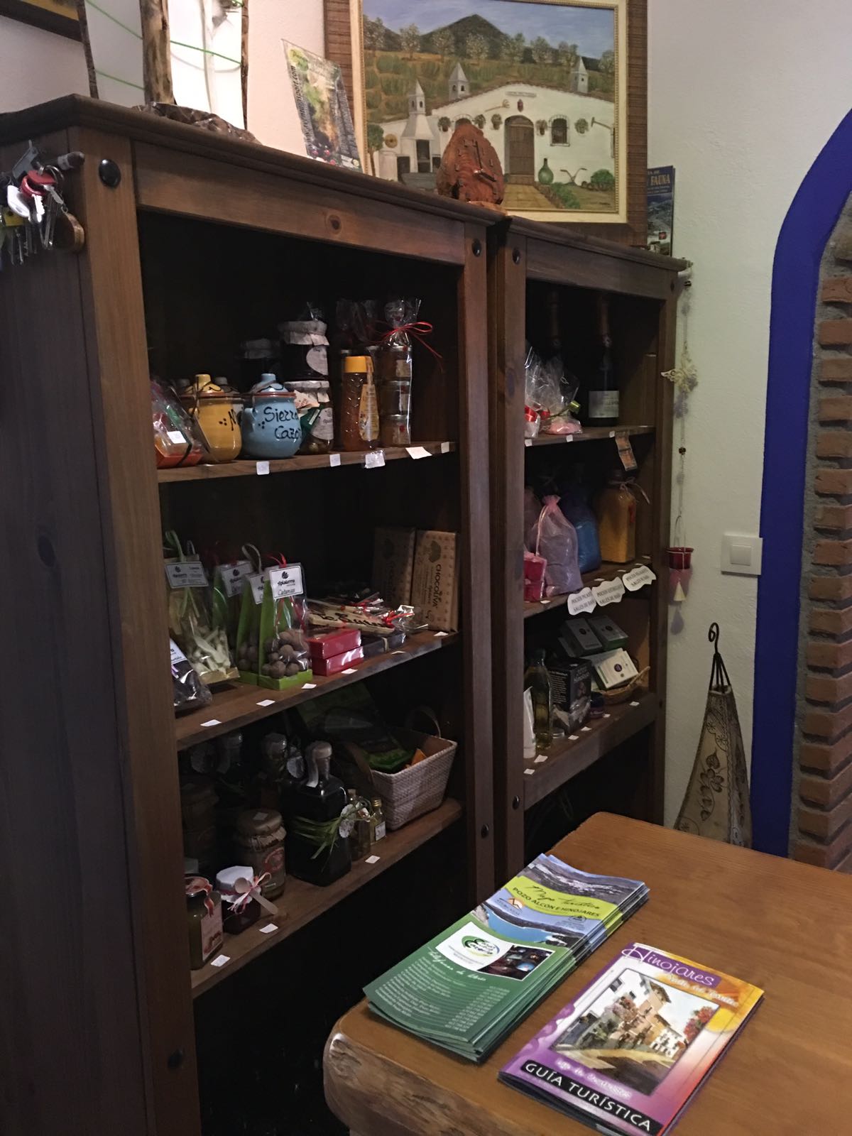 Recepción para hacer el check-in, despensa de productos típicos; aceites, chocolates artesanos, sales de baño y artesanía local.